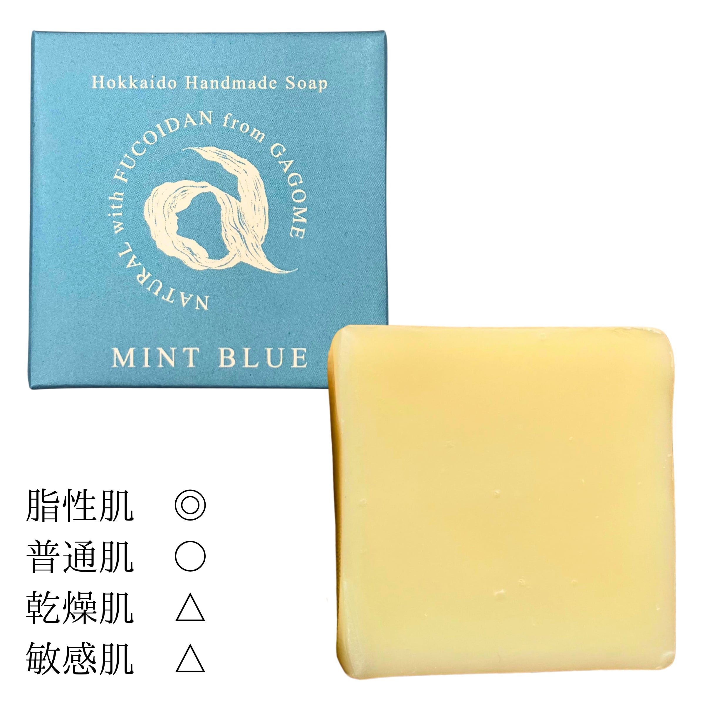 パーム油、ヤシ油、水、水酸化Na、褐藻エキス、オリーブ油、ホホバ種子油、ハッカ油、コウスイガヤ油、マヨラナ葉油